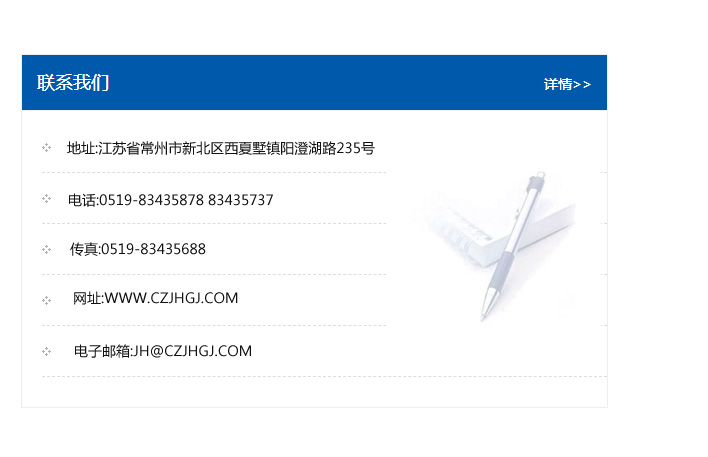 地址:常州市新北區友邦商務大廈1幢16、17層  電話:0519-85101652  傳真:0519-85112595  郵編:213022  網址:www.cz-jiayue_cn.bxjthn.com  郵箱:xiajifengaa@163.com